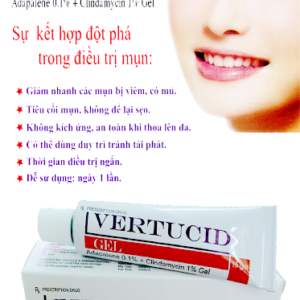 Vertucid gel được chỉ định điều trị tình trạng da bị mụn trứng cá ở mức độ nhẹ cho đến vừa phải với niều mụn trứng cá có nhân, mụn chứng cá sần và mụn trứng cá mủ. Thuốc chỉ định cho mụn nổi trên mặt, ngực hoặc lưng.
